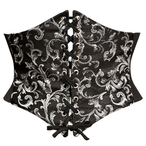 Lavish Black/Silver Brocade Corset Belt Cincher